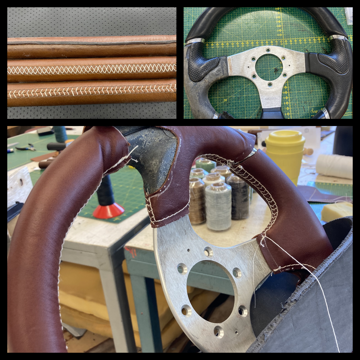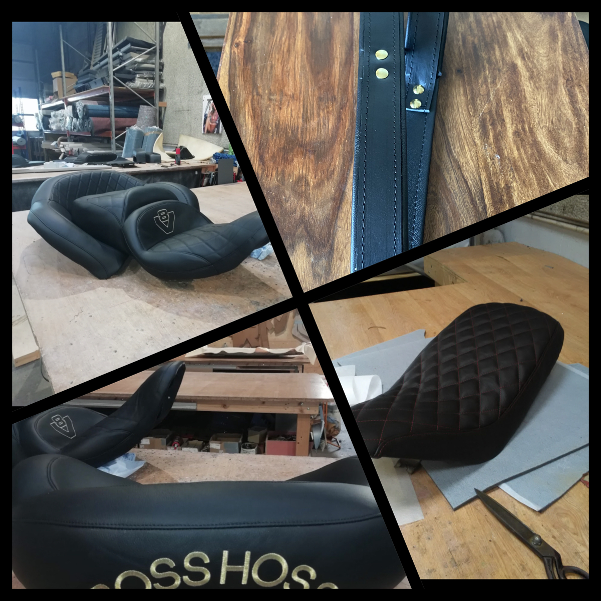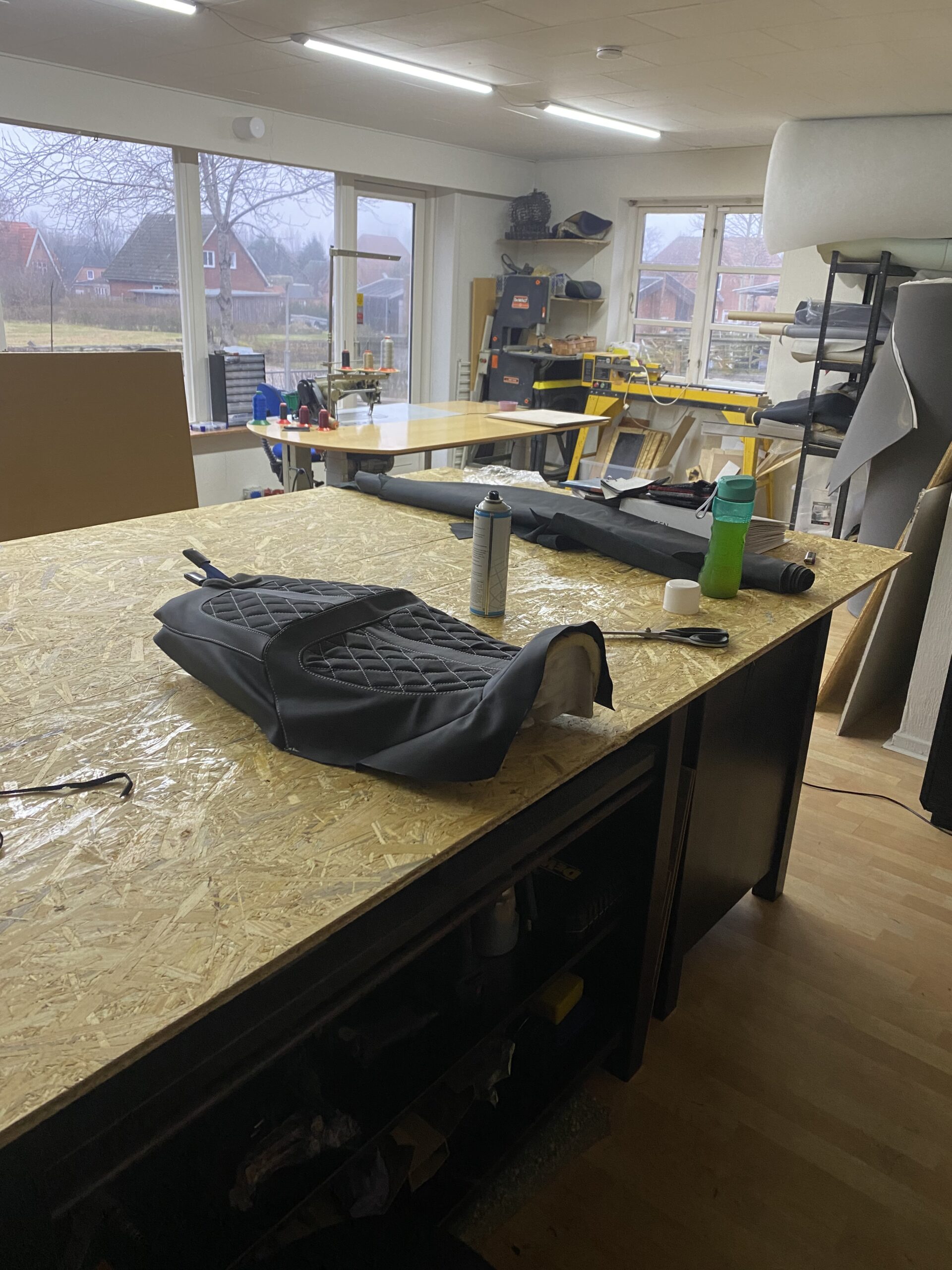 Her kan du se lidt af det, jeg har lavet – både til campingvogne, biler, møbler og både. Hver opgave er forskellig, og det er det, der gør det spændende. Jeg gør mig umage med alle detaljer, og alt bliver lavet her på værkstedet.